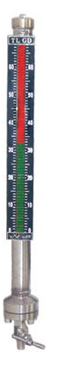 和被測容器形成連通器,保證被測量容器與測量管體間的液位相等。當(dāng)液位計(jì)測量管中的浮子隨被測液位變化時(shí),浮子中的磁性體與顯示條上顯示色標(biāo)中的磁性體作用,使其翻轉(zhuǎn),紅色表示有液,白色表示無液,以達(dá)到就地準(zhǔn)確顯示液位的目的。