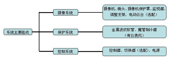 示例說明:電動(dòng)云臺(tái)式常溫普通型彩色工業(yè)電視監(jiān)視系統(tǒng)