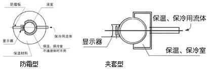 防霜型液位計主要用于零度以下的液體。低溫液體常在液位計表面結霜或冰無法觀看液面,在這種場合,可在顯示器前加裝丙烯基保護窗,整體加裝保溫材料,這樣就可經(jīng)通過保護窗觀察到正確液位。 夾套型(J):